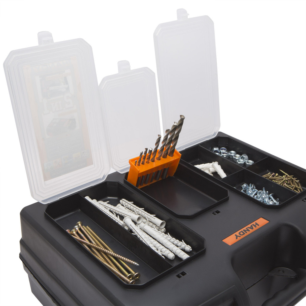 kisebb alkatrészeknek, 3 db különféle méretű, zárható rendszerezővel ellátva.