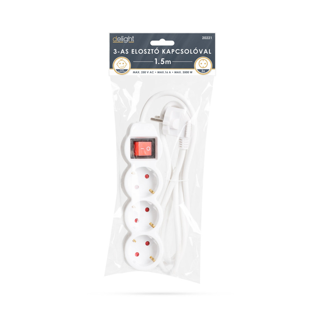 1,5 m hosszú, H05VVF 3G1,0 mm2 keresztmetszetű, fehér kábellel