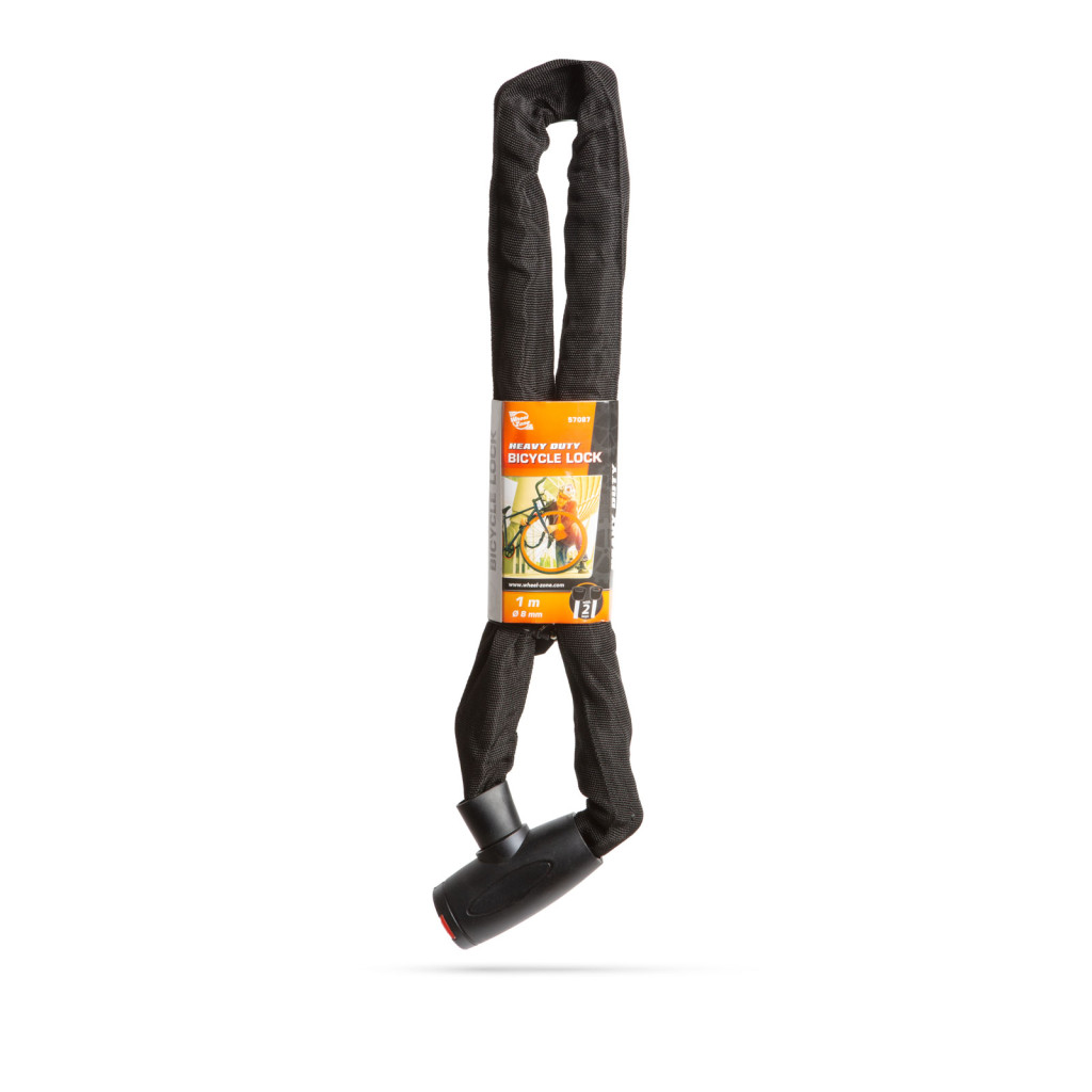 A szövettel bevont acéllánc ellenállóbb a vágó támadásokkal szemben. Minőségi zárszerkezet, 2 db kulccsal.