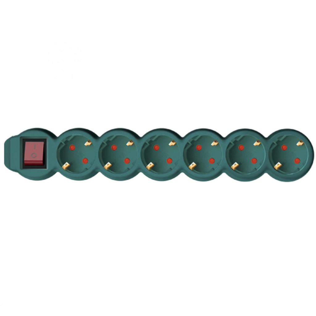 Home NV 6K-5/GR/1,5 hálózati elosztó, 5 m, H05VV-F 3G1,5 mm2 kábel, kétpólusú kapcsoló, IP20 kivitel, 6 védőérintkezős aljzat, max. 3500W, zöld