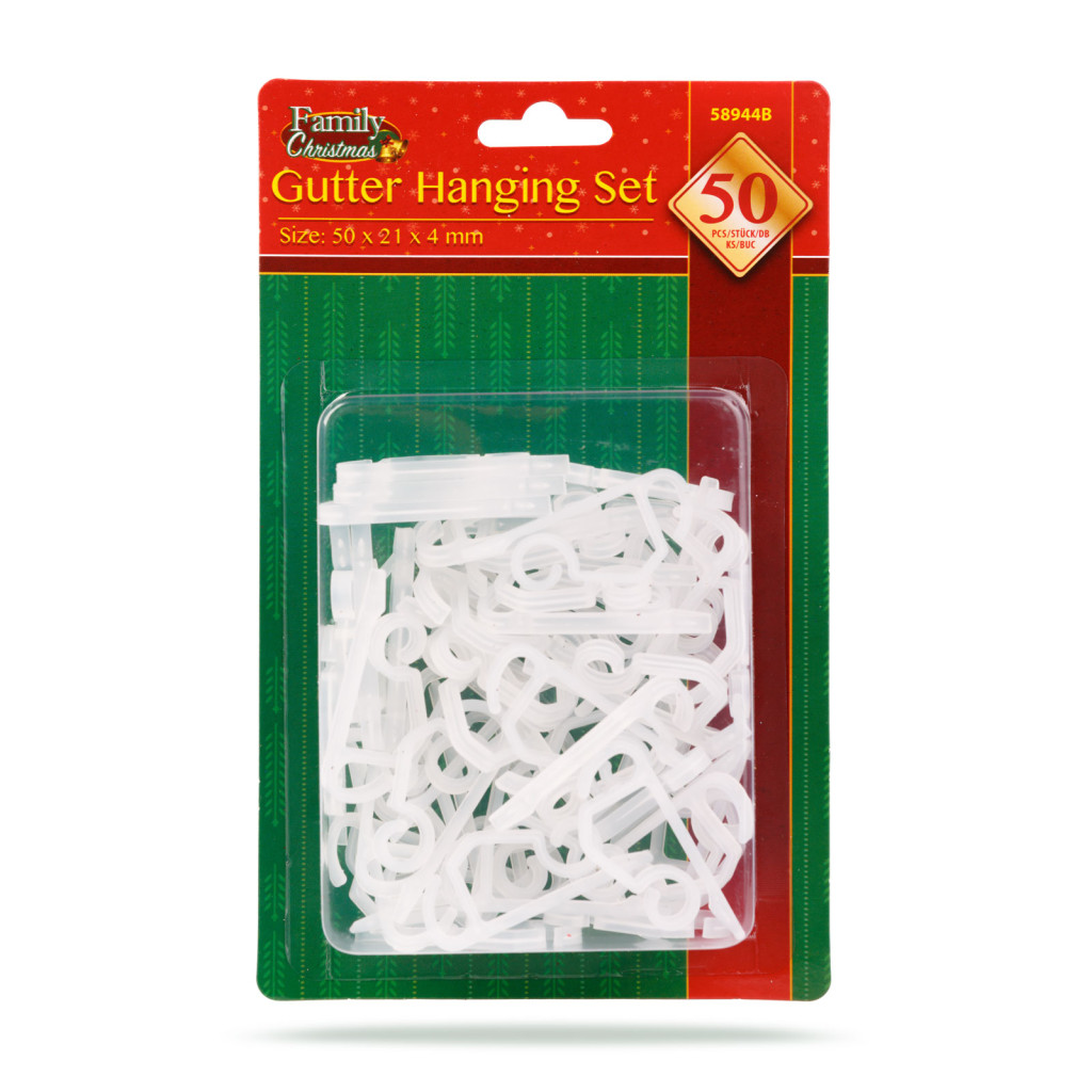 Ezzel a kampó szettel egyszerűen és biztonságosan rögzítheti a karácsonyi fényfüzéreket, dekorációkat az ereszcsatornára, erkénykorlátra, kerítésre! Nincs szükség szegelésre, csavarozásra, egyszerűen a peremre akasztható a kampó és hatékonyan, gyorsan telepíthető például: a fényfüzér, fényfüggöny.