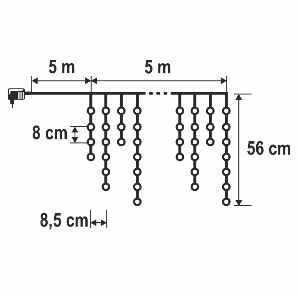 5 m x 56 cm • füzérek közötti távolság: 8,5 cm • LED-ek közötti távolság: 8 cm