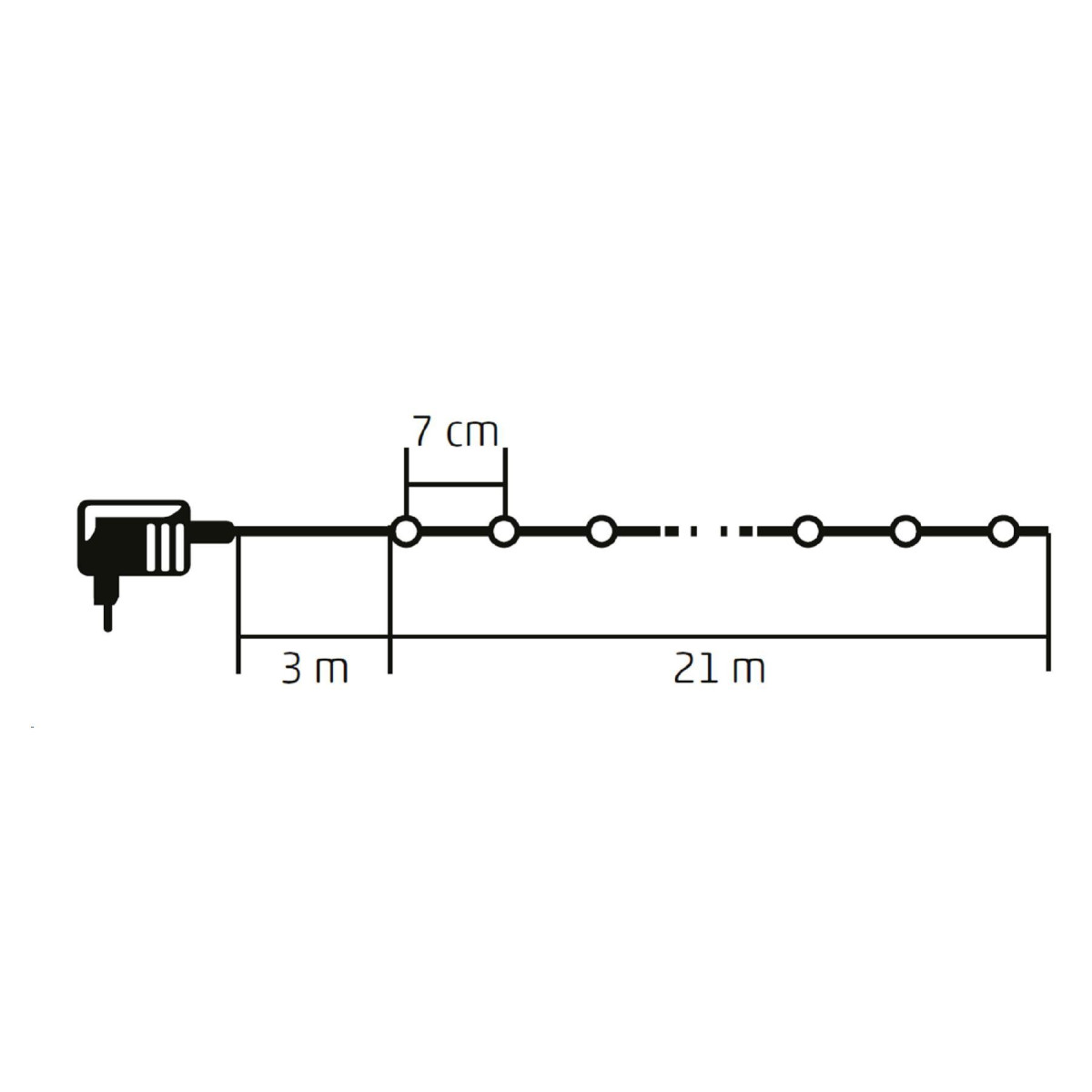 21 m füzérhossz (7 cm távolság a LED-ek között)