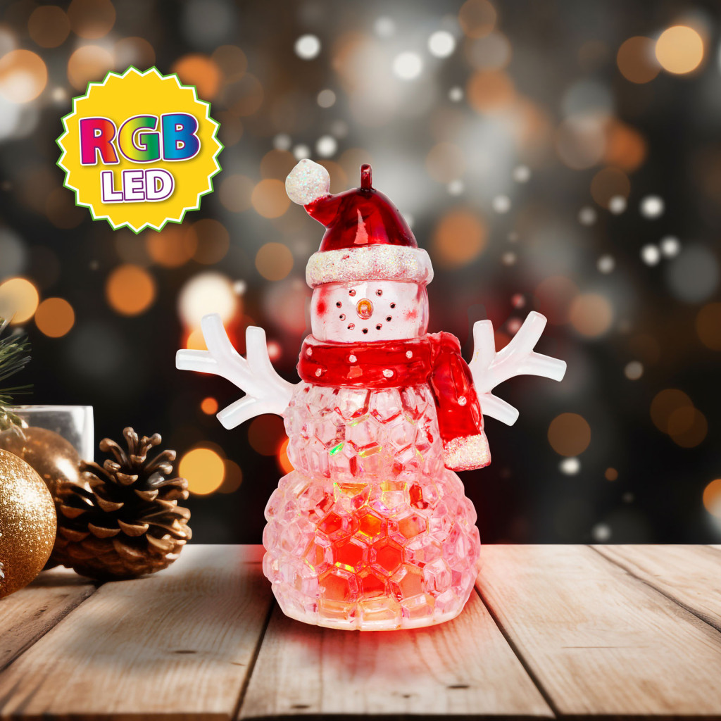 Az ünnep közeledtével dekorálja irodáját, otthonát ezzel az aranyos LED-es hóemberrel. A áttetsző hóember különböző színnel világít. A LED technológiának köszönhetően energiatakarékos. Bárhová elhelyezheti a kábelmenetes, elemes működésnek köszönhetően.