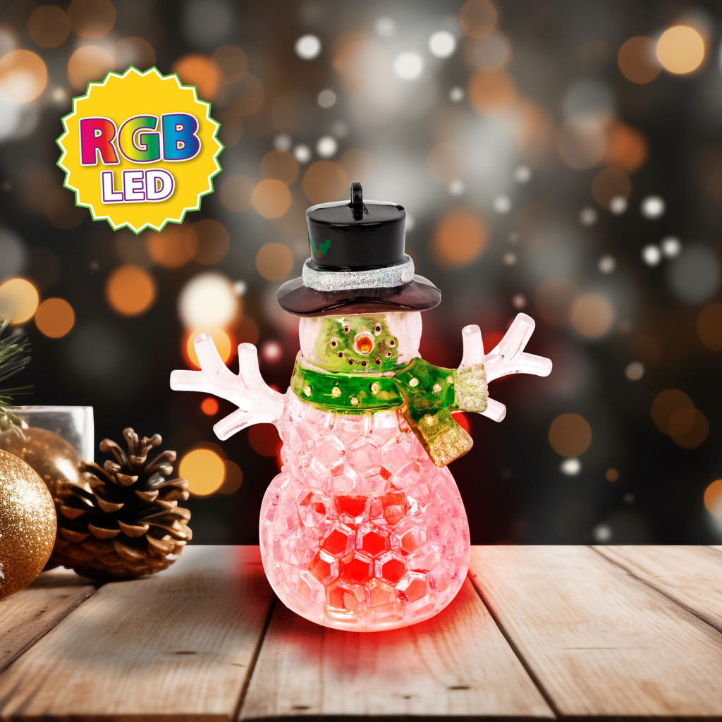 Az ünnep közeledtével dekorálja irodáját, otthonát ezzel az aranyos LED-es hóemberrel. A áttetsző hóember különböző színnel világít. A LED technológiának köszönhetően energiatakarékos. Bárhová elhelyezheti a kábelmenetes, elemes működésnek köszönhetően.