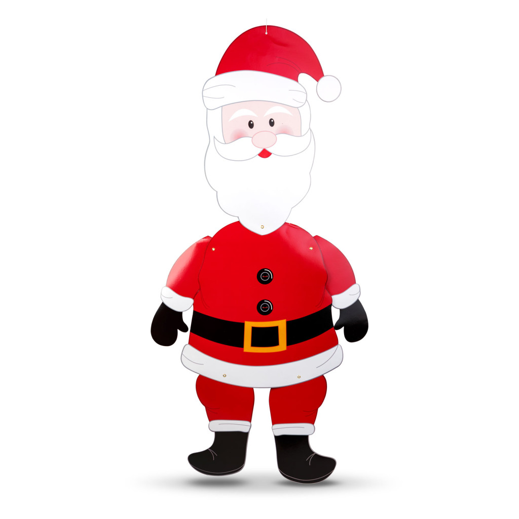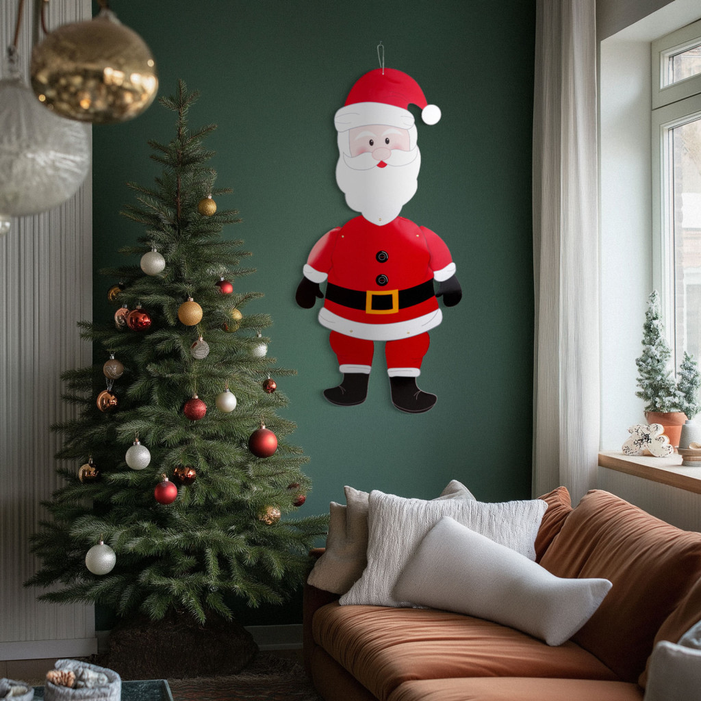 Dekorálja otthonát ezzel a nagyméretű, papírból készült Mikulással! Garantáltan feldobja a karácsonyi enteriőrt, végtagjai, feje mozgatható, tetszés szerint beállítható. 90 cm magas, felakasztható így ideális nagyobb terek díszítésére is.
