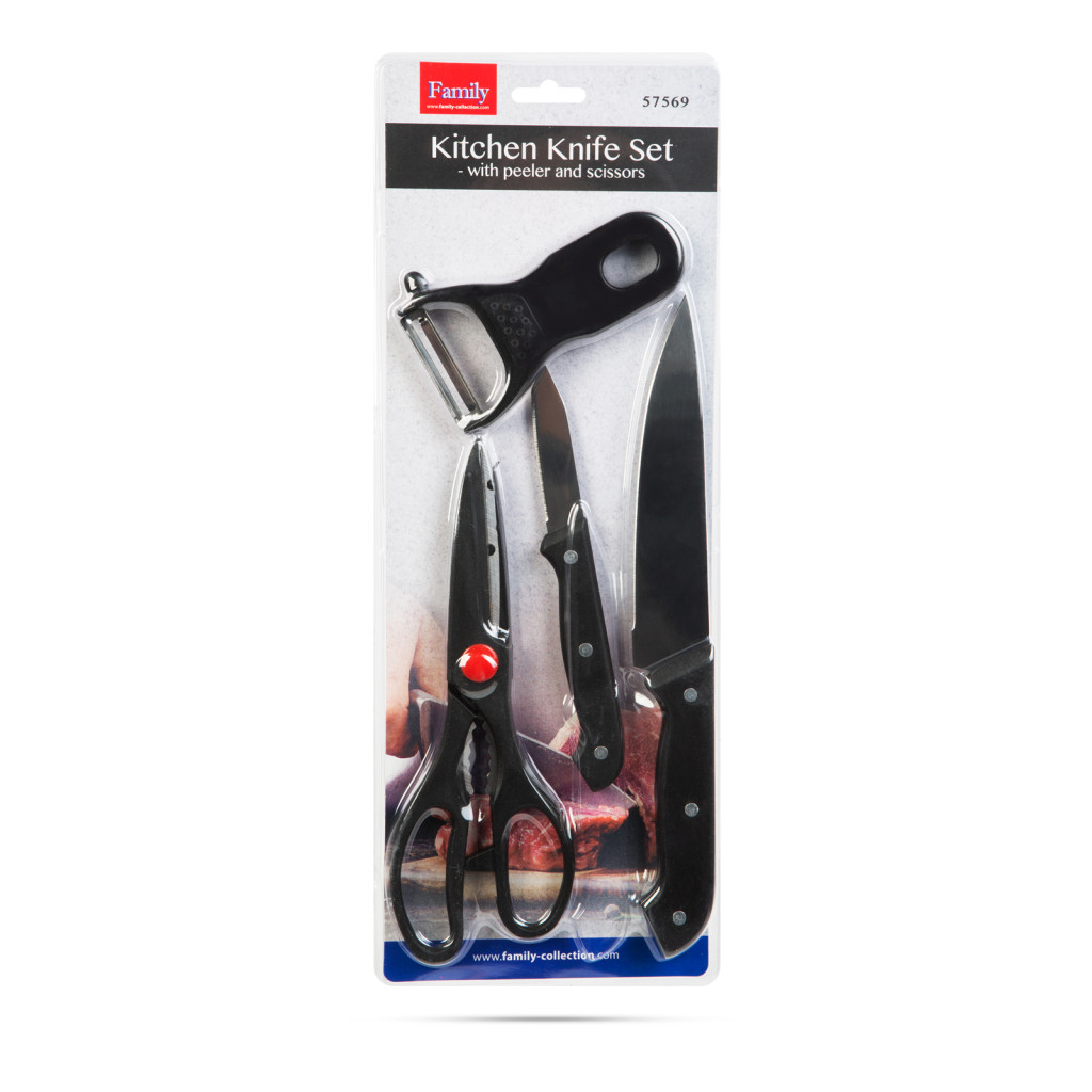 | Teljes méret: | kisebb kés: 182 x 20 mm nagyobb kés: 270 x 30 mm zöldséghámozó: 115 x 70 mm olló: 210 x 75 mm |