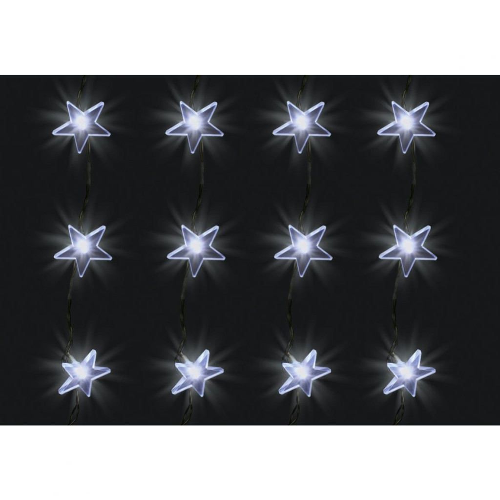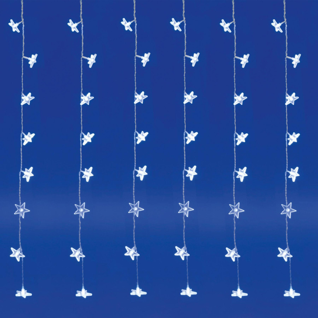 Home KAF 48L LED-es csillag fényfüggöny, 1,5x1 m / 48 db hidegfehér LED csillag figurákban, átlátszó vezeték, hálózati adapter, beltéri kivitel