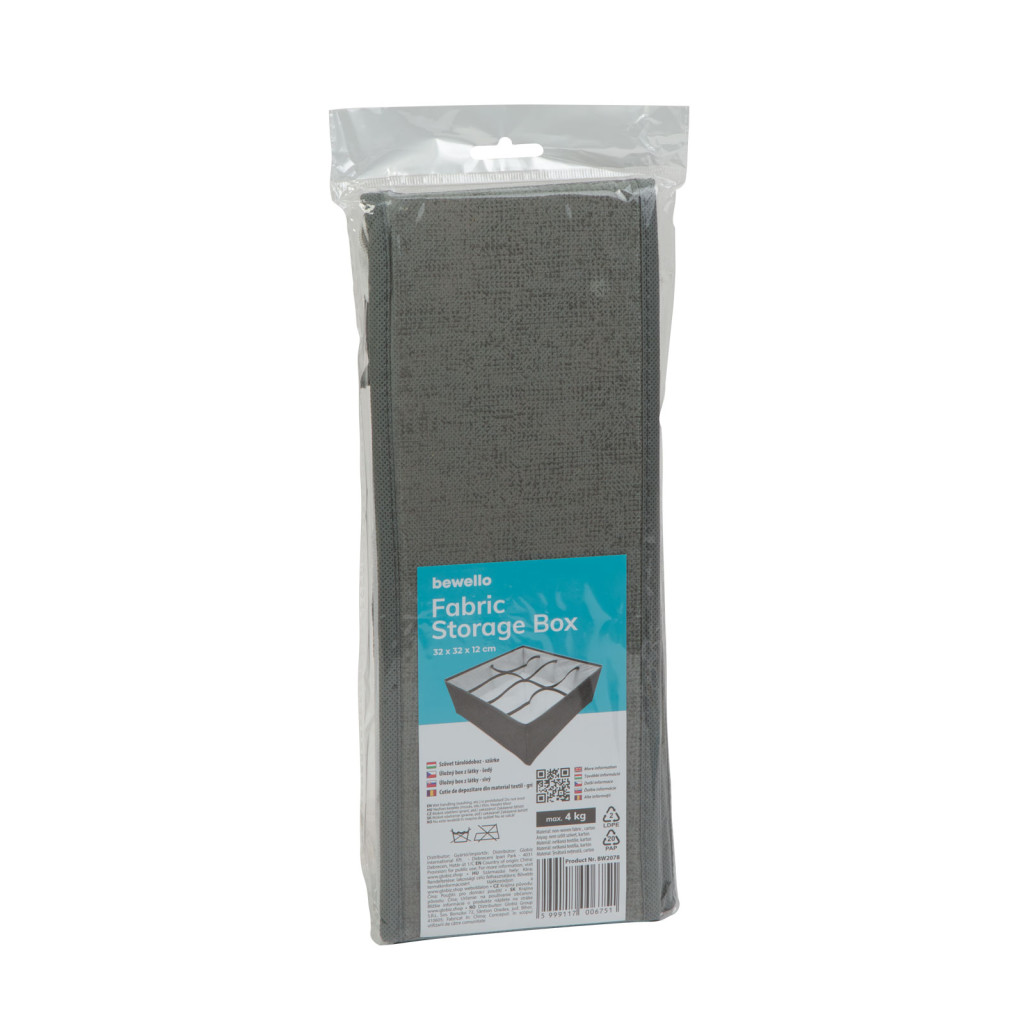 A szövet tárolódoboz tökéletes választás lehet ruhák, játékok vagy bármely más tárgy rendezett tárolásához. A használaton kívüli, kis helyen történő tárolást biztosítja az alján elhelyezett cipzár, amelyet kinyitva összezárható a doboz.