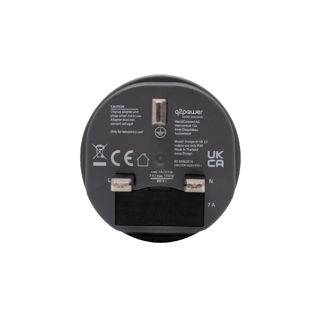 Q2POWER 1.200100-TH utazóadapter, Europe to UK, bemeneti feszültség: 100-250 V, 7 A, teljesítmény:100V-700W/250V-1750W