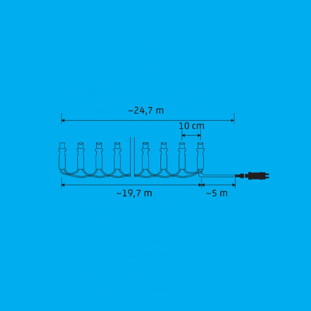 24,7 m (19,7 m füzérhossz + 5 m tápvezeték)